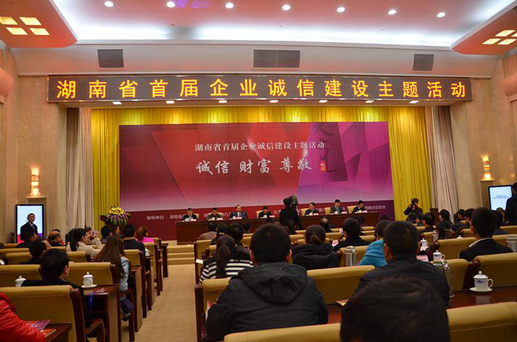 頒獎會上,省政府副省長盛茂林蒞臨現場并作重要講話。原省人大副主任陳叔紅及省委宣傳部、省工商局局長李金冬等領導出席。全省300多家誠信企業(yè)代表參加了會議。湖南衛(wèi)視、湖南經視、三湘都市報、瀟湘晨報等媒體現場報道。本次評選選活動以“誠信、財富、尊敬”為主題,由湖南省委宣傳部、省工商行政管理局指導,湖南省守合同重信用企業(yè)協會和湖南省信用建設促進會共同主辦,旨在更好的宣傳推廣湖湘誠信企業(yè),表彰為湖南省建設和發(fā)展做出了卓越貢獻的誠信企業(yè),凝聚誠信發(fā)展共識?;顒幼?月份開始,在對全省誠信企業(yè)家、誠信品牌宣傳和展示的基礎上,評選出了“2013湖南省誠信百強品牌企業(yè)”和“2013湖南省誠信企業(yè)”。