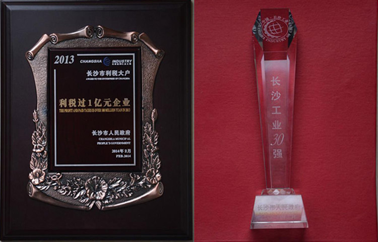 公司榮獲2013年度“長沙工業(yè)三十強(qiáng)”、“利稅過億元企業(yè)”等榮譽(yù)