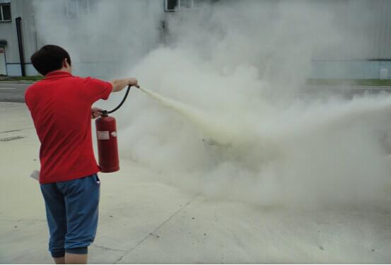 培訓最后全體人員從模擬火災現場進行逃生疏散演練,以及進行滅火器滅火、使用消防水管的演練。