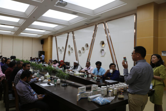 爾康制藥員工向培訓班學員介紹公司產(chǎn)品