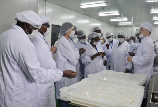 培訓班學員參觀了爾康制藥的總部辦公大樓以及部分生產(chǎn)車間,在技術人員的指導下,學習了爾康制藥的相關生產(chǎn)檢驗設備的操作流程,詳細詢問和了解公司很多產(chǎn)品,特別是淀粉膠囊的相關知識。肯尼亞學員看到制作淀粉膠囊的木薯圖片后,興奮地說到:“我們肯尼亞也有這種木薯,肯尼亞物產(chǎn)豐富,氣候適宜,國家渴望發(fā)展,希望爾康制藥以后也到我們國家去投資生產(chǎn)。”