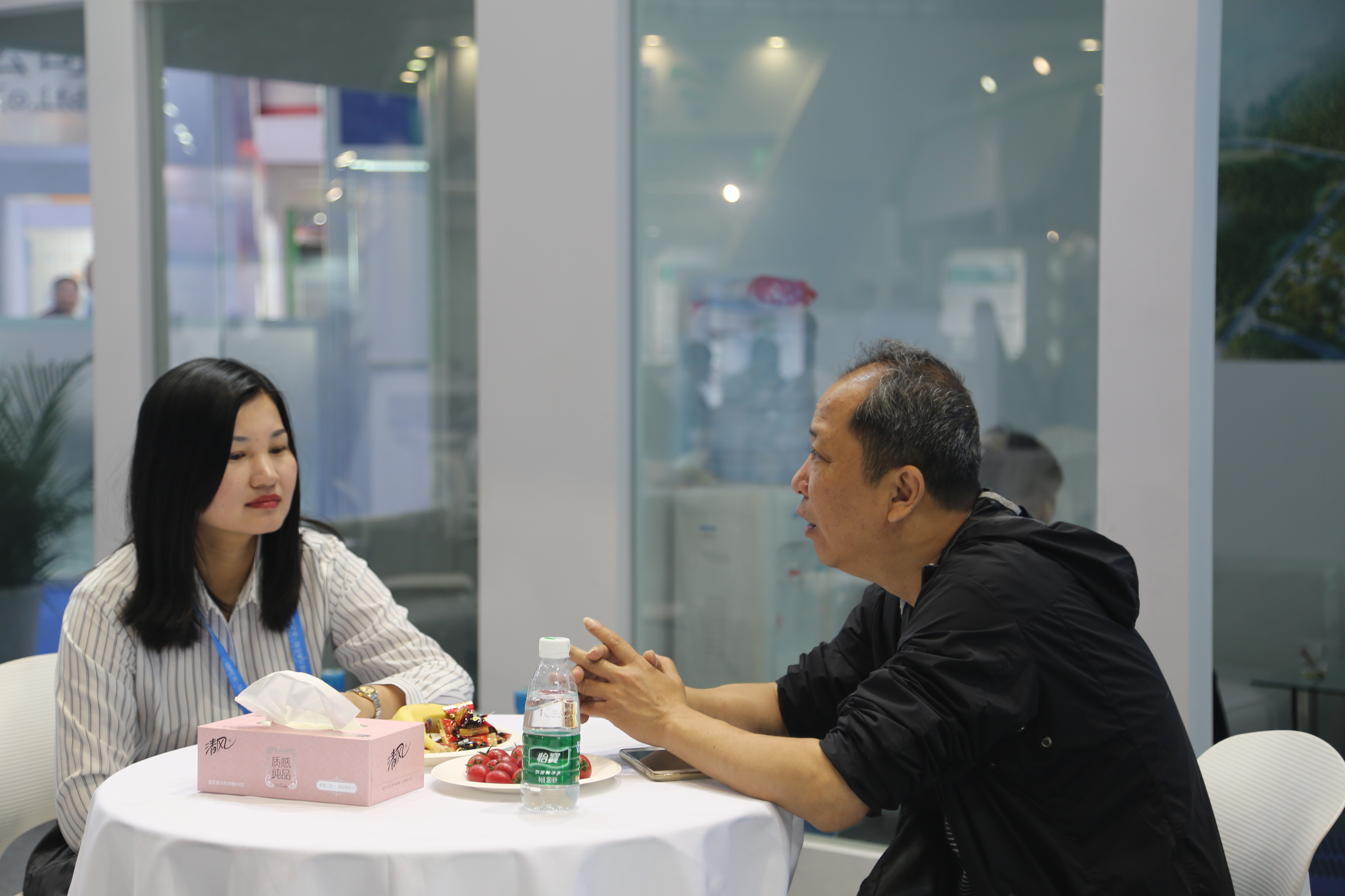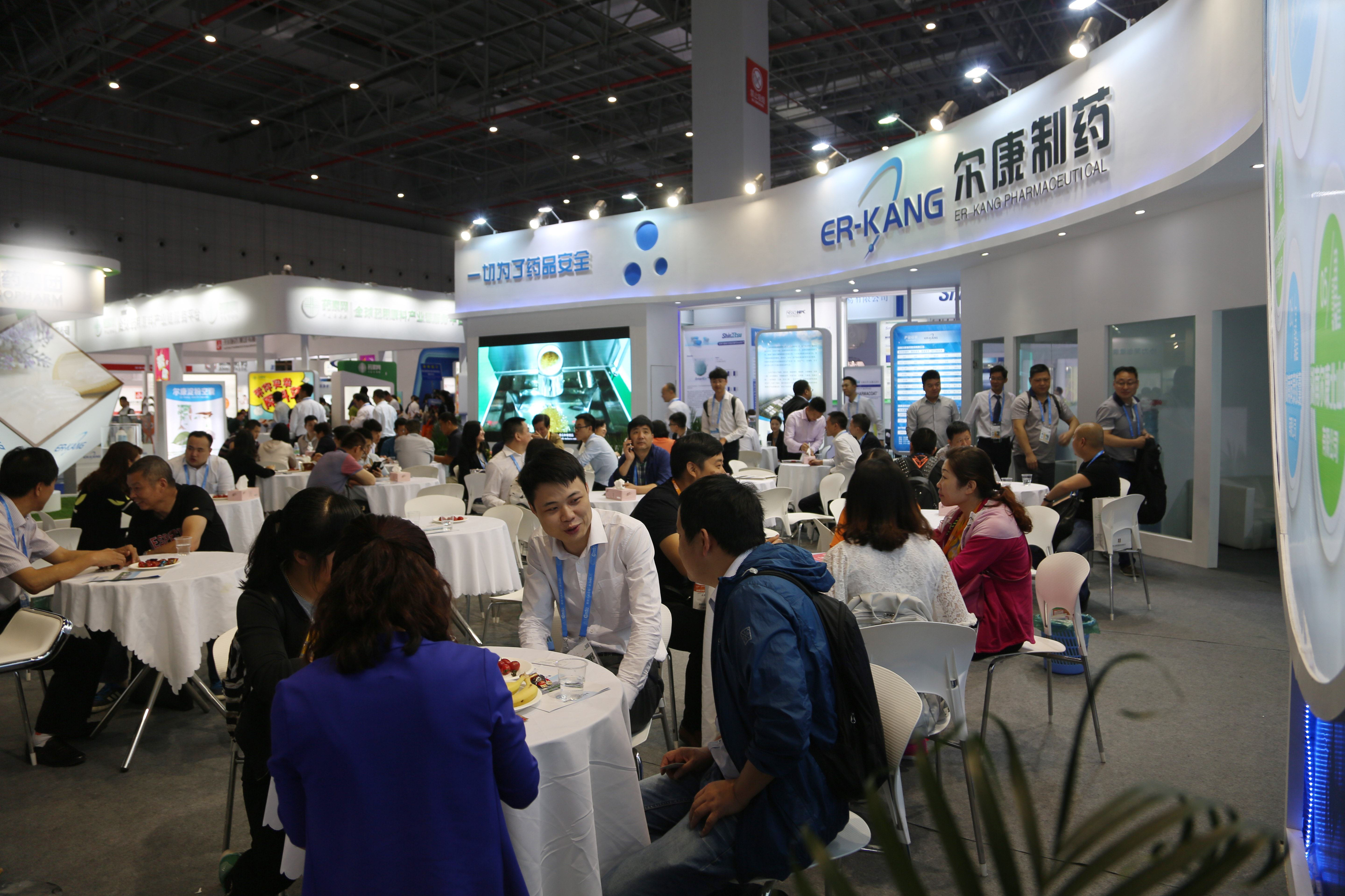 一進入上海國家會展中心大門,爾康制藥藍白簡約風格的展廳就映入眼簾,百余平方米的展廳內整齊擺放著近三十套桌椅,展臺上井然有序的陳列著參展產品,四十余名工作人員精神煥發,用心接待每一位客戶,努力讓每一位客戶滿意。