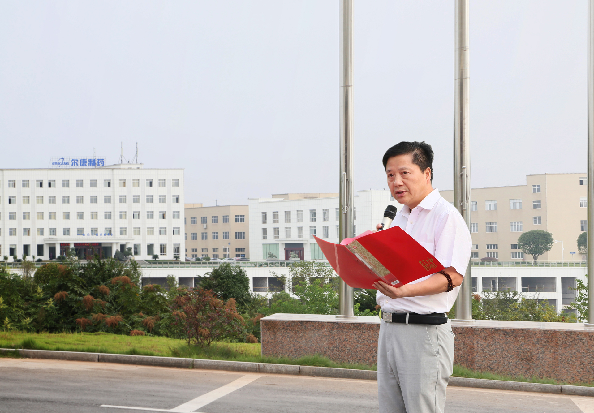 爾康制藥董事長帥放文在國旗下講話