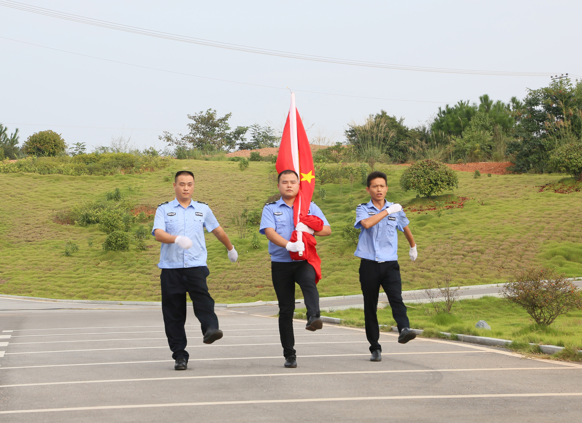 上午8時,升旗儀式正式開始,在雄壯的國歌聲中,鮮艷的五星紅旗冉冉升起,全體人員肅立并行注目禮,共同表達對偉大祖國的熱愛。