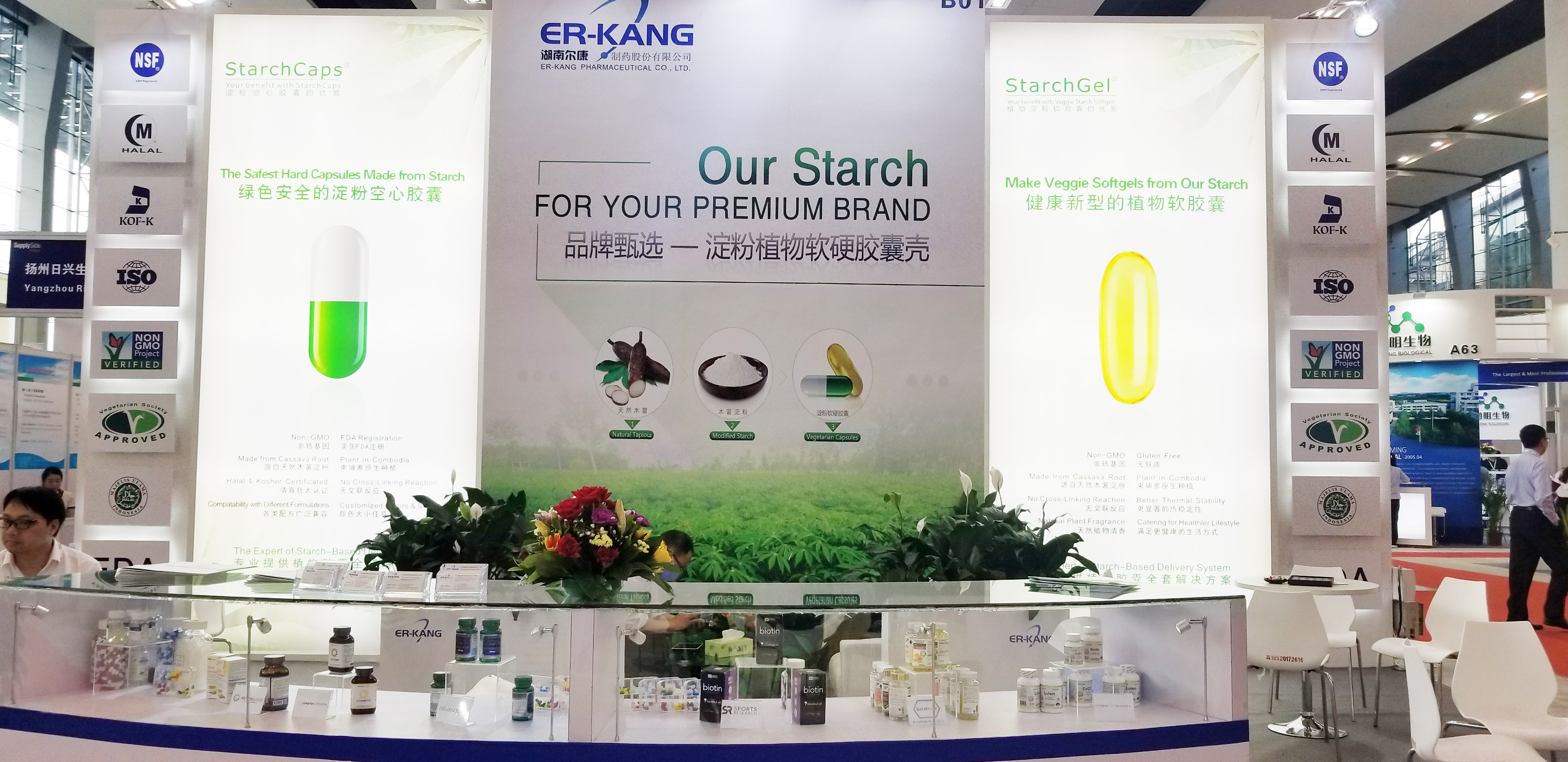 爾康制藥此次參展的產品主要包括淀粉硬膠囊、軟膠囊用改性淀粉以及淀粉軟膠囊相關產品,這些產品擁有天然健康、安全穩定、綠色環保等優勢,能夠運用在藥品、食品、保健品(膳食補充劑)和化妝品等領域。在保健品(膳食補充劑)領域,爾康制藥淀粉軟膠囊已經運用到魚油、生物素、維生素、蝦青素、葉黃素、姜黃素、亞麻籽油等保健品(膳食補充劑)中,相關產品已在美國、英國、加拿大以及東南亞等國家地區上市。