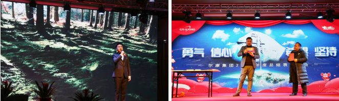 爾康制藥總經理孫慶榮總結了過去一年公司的發展情況,雖然經濟下行,形勢嚴峻,但是所有爾康人發揚不怕苦、不服輸的工作作風,公司實現了穩步發展。在新的一年里,希望每一位爾康人懷抱“勇氣、信心、希望、堅持”,勇往直前,努力創造新的成績。